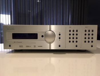 Reduced in December 2019. Was: €590. The MV-5 is an audio and video preamplifier and processor. Compatibility: NTSC, PAL and SECAM. Component Video: 3-channel (Y, Pr, Pb) format-independent. HDMI (Version 1.1) Input/Output: Video: 480i/p, 576i/p, 720p or 1080i. Audio: Dolby Digital, DTS and PCM. Inputs: Analog Video: component video, (4) x S-Video connectors, (4) x composite video connectors. Digital Audio: (4) x S/PDIF coaxial (RCA) and (4) x S/PDIF optical (Toslink), (1) USB mini-B connector. Analog Audio: eight-channel RCA input array, (6) x RCA stereo connectors, (1) microphone 3.5mm mono mini plug, (1) docking station (included). A/D Conversion: 24-bit, 96kHz, dual-bit. D/A Conversion: 24-bit, 44.1 to 192kHz, multi-bit.