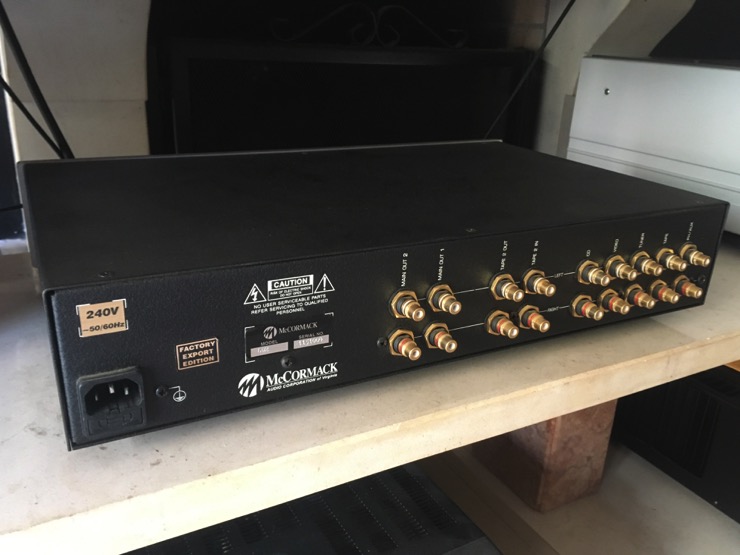 Solid-State preamplifier, with very high quality parts throughout. The unit uses a Burr-Brown digital volume control, which increments in .5 db steps. A Home theater bypass mode has been added (only works on the video input). The outputs are wired in parallel and are electrically identical, so you can connect either a powered subwoofer or another amplifier for bi-amp operation. Specifications: (5) single-ended inputs: CD, Video, Tuner, Tape and PH/Aux. (2) single-ended outputs. (1) Tape in /Tape out. Gain: 20 dB. Remarks: This unit does not come with phono input.