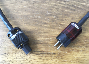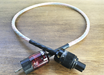 Valhalla 1 Reference Power Cord. Specifications: Construction: Precision dual micro mono-filament. Insulation: FEP Teflon. Conductors: 7 x 16 AWG with 70 microns Extruded Silver over 99.999999% OFC. Connectors: Gold Plated Wattgate IEC and Oyaide P-046e Wall Power Plug. Color: Clear Red and Black Filaments. Speed: 91% Speed of Light. Power Rating: 60Amp. Capacitance: 8pF/ft. DC Resistance: 1.3 Ohms per 1000 ft/304 m as Terminated. Remarks: No original packaging.
