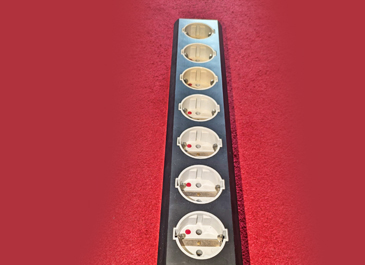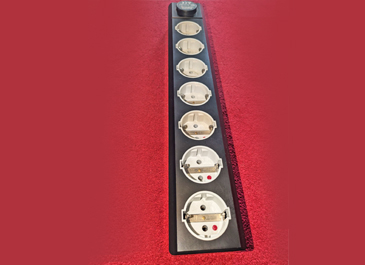 The Mains Multiplier is not a regular multiple socket but more a work of art made on a CNC machine that shapes this form out of one piece synthetic material. The wiring for phase, neutral and earth is connected by a star principle. Every output has its own wiring towards the feed cable. A ‘Pulse Protector’ is integrated behind the IEC input connector. This prevents peaks and pulses reaching your audio equipment. The total current drawn from all outlets together may not exceed 16 Amps. At 230 Volts mains supply this is equivalent to 3680W. The Mains Multiplier 7 has three HF filtered outputs and four direct outputs. Specifications: Maximum voltage: 250 Volt. Maximum peak voltage: 2500 Volt. Maximum peak current: 4500 Ampere. Maximum peak energy: 3x65 Joule. Response time: <25 nanoseconds. Maximum continuous current per socket: 10 Ampere. Maximum total current: 10 Ampere.