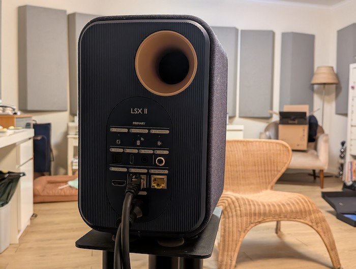 KEF LSX II Wireless Powered Speakers. The LSX IIs sound fantastic with an energetic and exciting midrange and a surprisingly solid low end. The UniQ driver produces a neutral but extremely engaging sound. Specifications: Drivers: 4.5-inch magnesium/aluminum-cone woofer, 0.75-inch aluminum-dome tweeter in "Uni-Q" (coincident) arrangement. Enclosure Type: Vented. Rated Power: 70 watts (woofer) + 30 watts (tweeter), class-D; on-board DSP performs crossover, equalization, dynamics management, subwoofer crossover/level. Connections: Optical, ARC-enabled HDMI, and USB-C digital inputs; analog stereo minijack input; analog RCA subwoofer output; RJ45 Ethernet port; RJ45 inter-speaker port; AC power. Wireless: Wi-Fi (IEEE 802.11a/b/g/n/ac, dual-band 2.4/5GHz), Bluetooth, AirPlay 2, Google Chromecast, Roon Ready, UPnP-compatible. Native Resolution: 24-bit/384kHz via wired network; 24/192 via HDMI eARC/coax digital, USB-C; 96/24 via optical. Control Via remote handset or KEF Connect app; reset and speaker/Bluetooth pairing buttons on main speaker.
